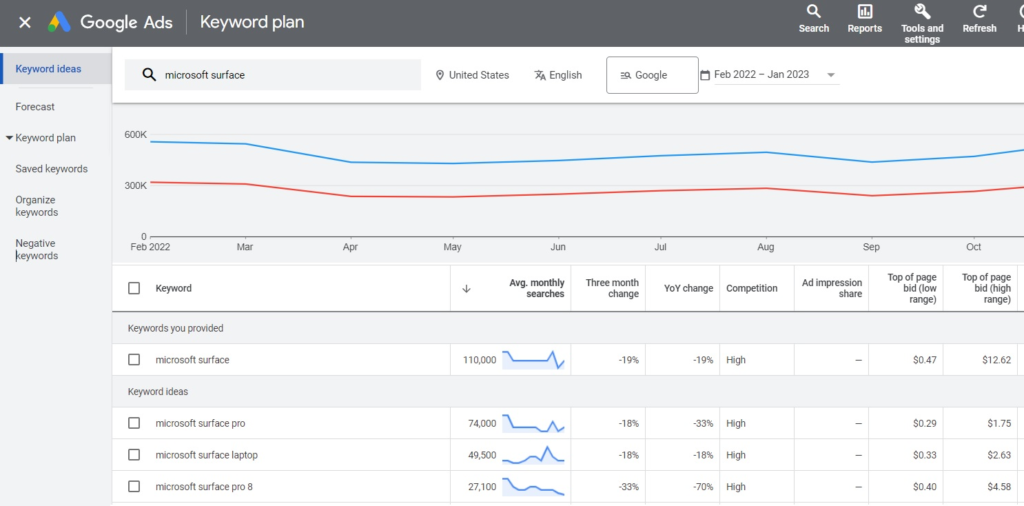 Google Keyword Planner is a free tool provided by Google Ads that helps you find relevant keywords for your SEO strategy. It provides keyword ideas, search volume data, and competition levels.”Optimize content with keyword research for targeted keywords and relevant organic traffic.